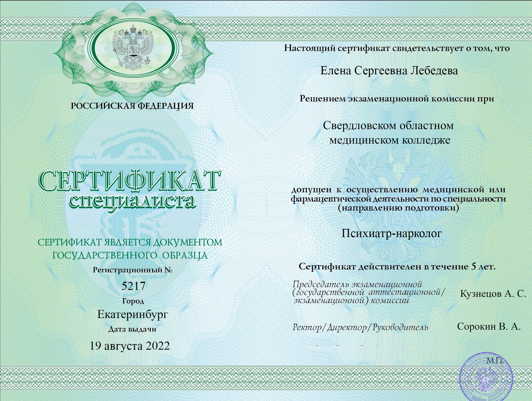 Елена Сергеевна Лебедева врач нарколог клиники доктора Стукаловой в Татарске